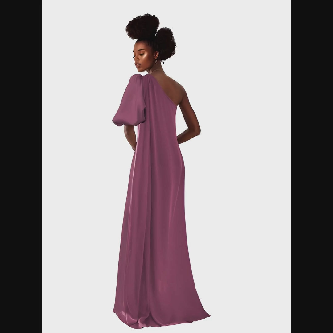 Mauve one-shoulder dress on a white background